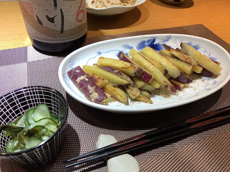 夜は「さつまいもスティック」を作った。