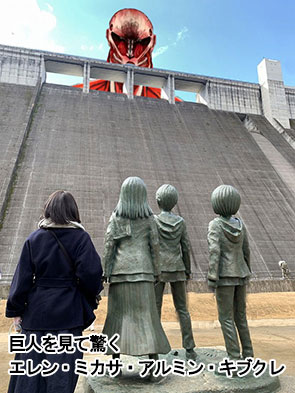 「大山ダム」に着くとなるほどすごい迫力だった。作者がここで着想を得たというのもわかる。ワシは「進撃の巨人」は見ていないが、姫が見たのでどうかと聞くと、確かにこんな感じだったとのこと。