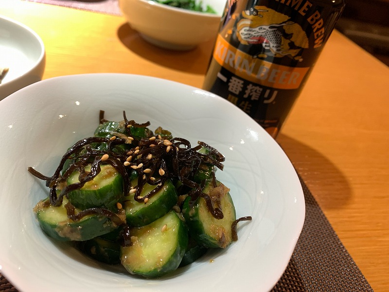 夜はワシは「きゅうりの和え物」を作った。