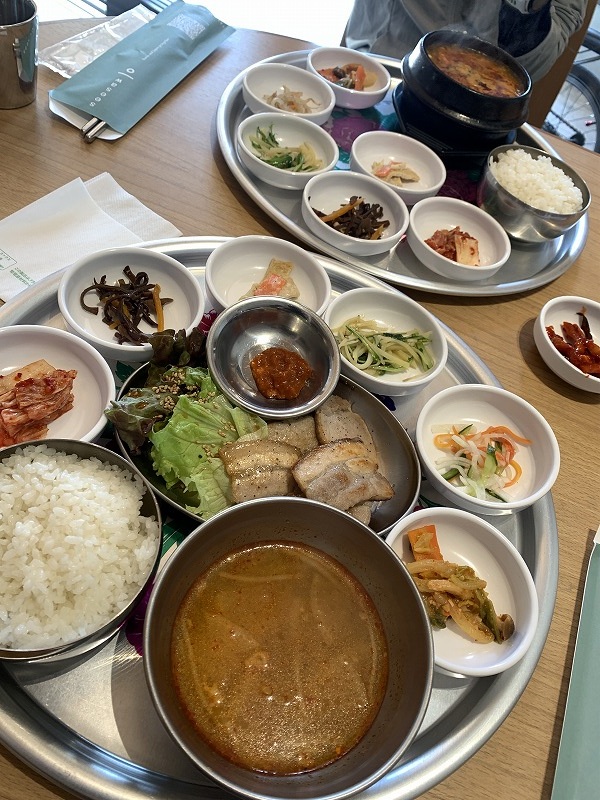 福岡にもおいしい韓国料理のお店はたくさんできましたが、ここはちょっとすごいです。かなりのヒットです。えしぇ蔵的に表現するなら、「さりげなく本格的」って感じです。お店の構えは今はやりのおしゃれなカフェのようにシンプルで清潔感があります。店内もシンプル。テーブルも椅子も清潔で、テーブルの引き出しに箸やスプーン、ナプキンがちゃんと揃ってます。用意されているお茶の味から既に本場の味。メニューを見ると様々な韓国料理がずらりと。軽食でも出すのかなという雰囲気のお店なのにメニューの豊富さはどこにも負けていません。そして肝心のお味。さすがに韓国の方が調理されているようで、申し分なしの本場の味。本当に韓国に旅行に来てるような気分にさせてくれます。おまけにお値段も良心的で全くいうことなし。いろんな種類の定食があるので、まずは1階でランチをお試し下さい。そして次は夜に2階で韓国焼肉を。帰りに口直しでちょっとだけ無料のコーヒーが飲めるのというのがまたいいんです。とにかく何から何まで至れり尽くせりで満足させてくれます。我が家からも近いので留守番の時に一人で来るのもいいなと密かに思っています。