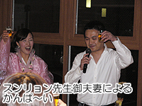 「太田鈑金」さんで作業を終わって、「緒方石油店」さんに給油に寄った時はすごい土砂降りだった。今日はたえこおばさんとおばあちゃんが店番だった。おとーさんとおかーさんとさおり専務は出動中だった。たえこおばさんは今日は休みのはず。忙しいので駆り出されたらしい。「今日は私服で仕事してます。私服の時はボランティアで給料が出ないんです」と言ってた。それにしても緒方家の人々はよく働くね。 「オアシス珈琲」さんで社長が作ったコーヒークロワッサンをみんなで試食した。まためちゃうまいんだな。これがあるからこの仕事やめられん。いつから売り出すんやろう?これも絶対売れると思う。 「日栄」さんでホームページのメンテナンスをして、その後は駅前のYさんのSOSに対応してから一度帰宅した。 やりかけの家事をこなしてからビートルで帰って来る姫様のお迎えに行った。そしてそのまま「マシェリ」のパーティーに参加した。会場は「オルトカフェ」。料理教室「マシェリ」の生徒さんが集まった。その数約60名。すごいやね。しかもそのうち男性は3人くらい?おー、ワシはもしかして浮いてるぞ!ふわふわふわ・・・。でも料理がうまいからワシは食いに走った。最後のデザートまでほぼ全部食ったからマジでお腹いっぱい。立食でこんなにお腹いっぱいになるのは始めて。最後は抽選会もあったりしてすごい盛況だった。これはやっぱスンリョン先生の人柄やね。なんかカリスマ性もあるもんな。けなげに働くヒョンスさんもおもしろい人だった。 「マシェリ」の今後の発展を祈ります。先生がんばれ! 「チョゴリ」 花園に あでやかなりし 彩り(いろどり)で ひときわ輝く 師のチョゴリかな 蔵