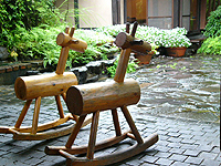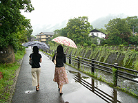 雨の湯布院も情緒があっていいもんだ。傘をさしてぷらぷらと・・・。