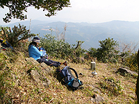 今回の年末年始はたっぷり休みをとった。でもあんまり長いと引退したような錯覚に陥る。身体を動かさない日が続くのも気持ち悪いので今日は新春第二段の登山。今回は「砥上山」。ここは神功皇后伝説が残る山。あまり高くなく道も急ではない。ポカポカ陽気の中、姫とてれてれ登った。山頂には祠があって、その周りは少し開けていた。見晴らしはよかったが今日はかすみがかかってた。お昼はおせち料理の残り弁当を食べた。外で食べると何でもうまい。